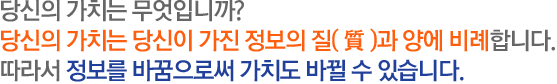 말이 있듯, 그 가치는 조직 구성원들에 의하여 결정될 것입니다.