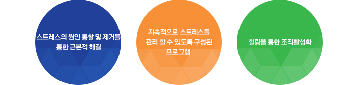 높여주는 교육과정. 구성원 개인에게는 스트레스의 원인 통찰 및 근본적인 관리방법을 제시하며, 이를 통하여 조직의 지속가능한